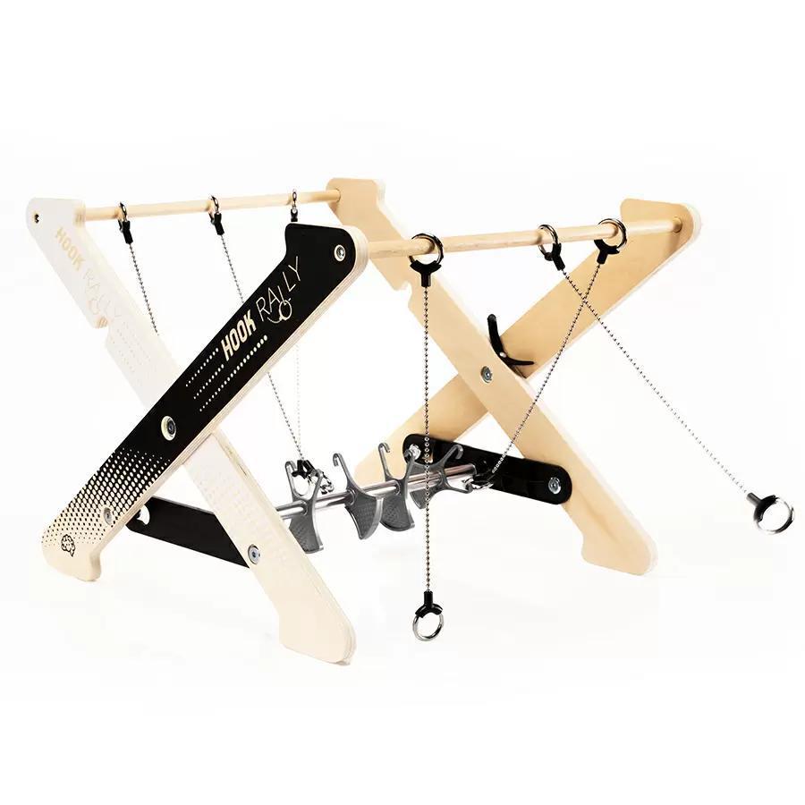 Players take positions on opposite sides of the game and start at the same end, so you're both competing for the same hook. Then, start swingin' to try and capture the hooks. Once you capture a hook, your opponent can't reach it. If you knock a ring off a hook you already captured, you've got to go back and recapture it (before your opponent does). The first to snag three hooks wins! Fast-paced, uniquely challenging, and foldable for easy storage, Hook Rally is an instant family favorite! Ages 8+