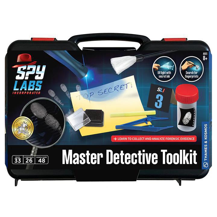Welcome to Spy Labs Incorporated, the one-stop shop for spies on the top! With this well-equipped toolkit, you can learn how detectives use forensic science to answer questions, gather evidence, and solve crimes. Experiment with the equipment and techniques used by real detectives to develop your own observation and problem-solving skills. First, you will set up your detective’s office and organize your tools. Then, you will do some exercises to hone your observation skills. Next, you will learn about securing a crime scene, and gathering and documenting evidence, including fingerprints, footprints, and tire tracks. After you have gathered evidence, such as hair and fibers, counterfeit currency, and soil samples, you will head back to the lab to learn how to analyze it. Finally, you can try your hand at deciphering codes, writing messages with invisible ink, and communicating with secret symbols. As your skills develop, you can use them to solve the practice cases.